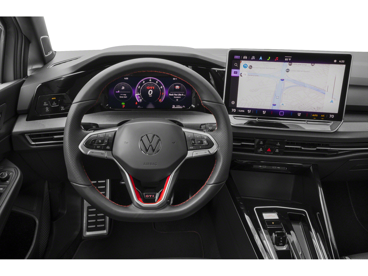 4-Wheel Disc Brakes, 9 Speakers, ABS brakes, Active Blind Spot Monitor, Adaptive suspension, Air Conditioning, Alloy wheels, AM/FM radio: SiriusXM with 360L, Auto High-beam Headlights, Auto-dimming Rear-View mirror, Automatic temperature control, Brake assist, Bumpers: body-color, Compass, Delay-off headlights, Driver door bin, Driver vanity mirror, Dual front impact airbags, Dual front side impact airbags, Electronic Stability Control, Emergency communication system: VW Car-Net Safe & Secure 5-year, Exterior Parking Camera Rear, Forward collision: FCW w/Autonomous Emergency Braking mitigation, Four wheel independent suspension, Front anti-roll bar, Front Bucket Seats, Front Center Armrest, Front dual zone A/C, Front fog lights, Front reading lights, Fully automatic headlights, harman/kardon® Speakers, Heads-Up Display, Heated and Actively Ventilated Front Top Sport Seats, Heated door mirrors, Heated front seats, Heated rear seats, Heated steering wheel, Illuminated entry, Leather steering wheel, Low tire pressure warning, Memory seat, Navigation System, Occupant sensing airbag, Outside temperature display, Overhead airbag, Overhead console, Panic alarm, Passenger door bin, Passenger vanity mirror, Perforated Vienna Leather Seating Surfaces, Power door mirrors, Power driver seat, Power moonroof: Panoramic, Power passenger seat, Power steering, Power windows, Radio data system, Radio: MIB3 Discover Pro AM/FM/HD With12.9 Touchscreen Navigation, Rain sensing wipers, Rear air conditioning, Rear anti-roll bar, Rear reading lights, Rear seat center armrest, Rear window defroster, Rear window wiper, Remote keyless entry, Security system, Speed control, Speed-sensing steering, Speed-Sensitive Wipers, Split folding rear seat, Spoiler, Sport steering wheel, Steering wheel mounted audio controls, Tachometer, Telescoping steering wheel, Tilt steering wheel, Traction control, Trip computer, Turn signal indicator mirrors, Variably intermittent wipers, Ventilated front seats, Wheels: 19 2-Tone Diamond-Turned Alloy. 2025 Volkswagen Golf GTI Autobahn FWD 7-Speed DSG Automatic with Tiptronic 2.0L TSI DOHC White Pearl