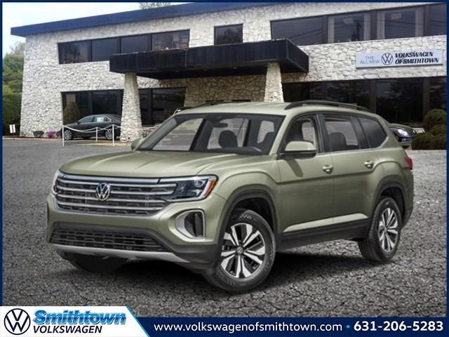 33-Month SiriusXM Service Extension Subscription, 3rd row seats: split-bench, 4-Wheel Disc Brakes, 4-Wheel Independent Suspension, 6 Speakers, ABS brakes, Air Conditioning, Alloy wheels, AM/FM radio: SiriusXM with 360L, Auto High-beam Headlights, Auto-dimming Rear-View mirror, Automatic temperature control, Black Wheel Package, Brake assist, Bumpers: body-color, Compass, Delay-off headlights, Driver door bin, Driver vanity mirror, Dual front impact airbags, Dual front side impact airbags, Electronic Stability Control, Emergency communication system: VW Car-Net Safe & Secure 5-year, Exterior Parking Camera Rear, Four wheel independent suspension, Front anti-roll bar, Front Bucket Seats, Front Center Armrest, Front dual zone A/C, Front fog lights, Front reading lights, Fully automatic headlights, Garage door transmitter: HomeLink, Heated & Actively Ventilated Front Bucket Seats, Heated door mirrors, Heated front seats, Heated steering wheel, Illuminated entry, Low tire pressure warning, Occupant sensing airbag, Outside temperature display, Overhead airbag, Overhead console, Panic alarm, Passenger door bin, Passenger vanity mirror, Perforated V-Tex Leatherette Seating Surfaces, Power door mirrors, Power driver seat, Power Liftgate, Power steering, Power windows, Radio data system, Radio: MIB3 Composition Media, Rain sensing wipers, Rear air conditioning, Rear anti-roll bar, Rear reading lights, Rear seat center armrest, Rear window defroster, Rear window wiper, Remote keyless entry, Security system, Speed control, Speed-sensing steering, Split folding rear seat, Spoiler, Steering wheel mounted audio controls, Tachometer, Telescoping steering wheel, Tilt steering wheel, Traction control, Trip computer, Turn signal indicator mirrors, Variably intermittent wipers, Ventilated front seats, Volkswagen Logo Puddle Lights, VW Care, Wheels: 20 2-Tone Machined Alloy, Wheels: 20 Multi-Spoke Black Painted Alloy. 2026 Volkswagen Atlas 2.0T SE w/Technology AWD 8-Speed Automatic with Tiptronic 2.0L TSI Green