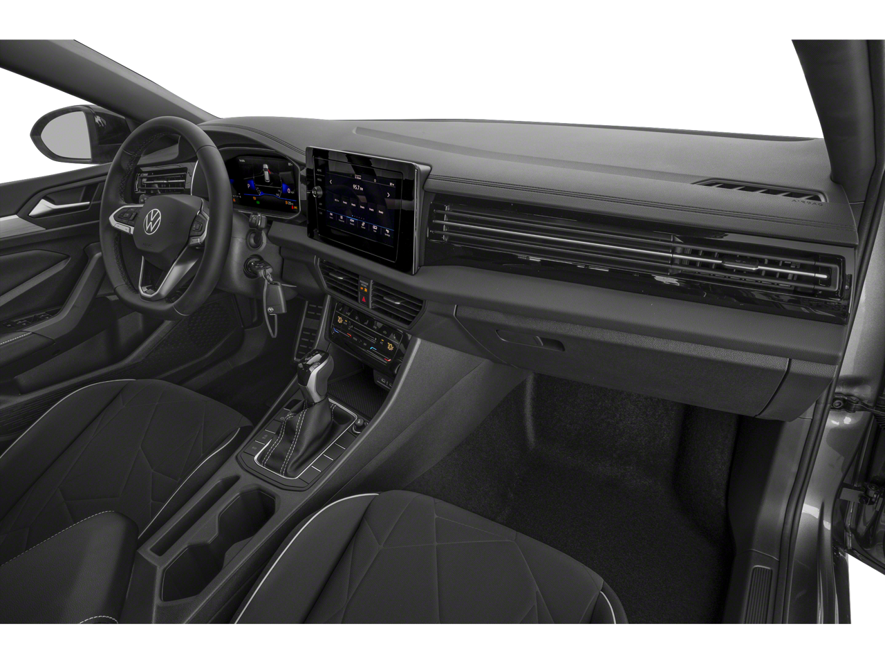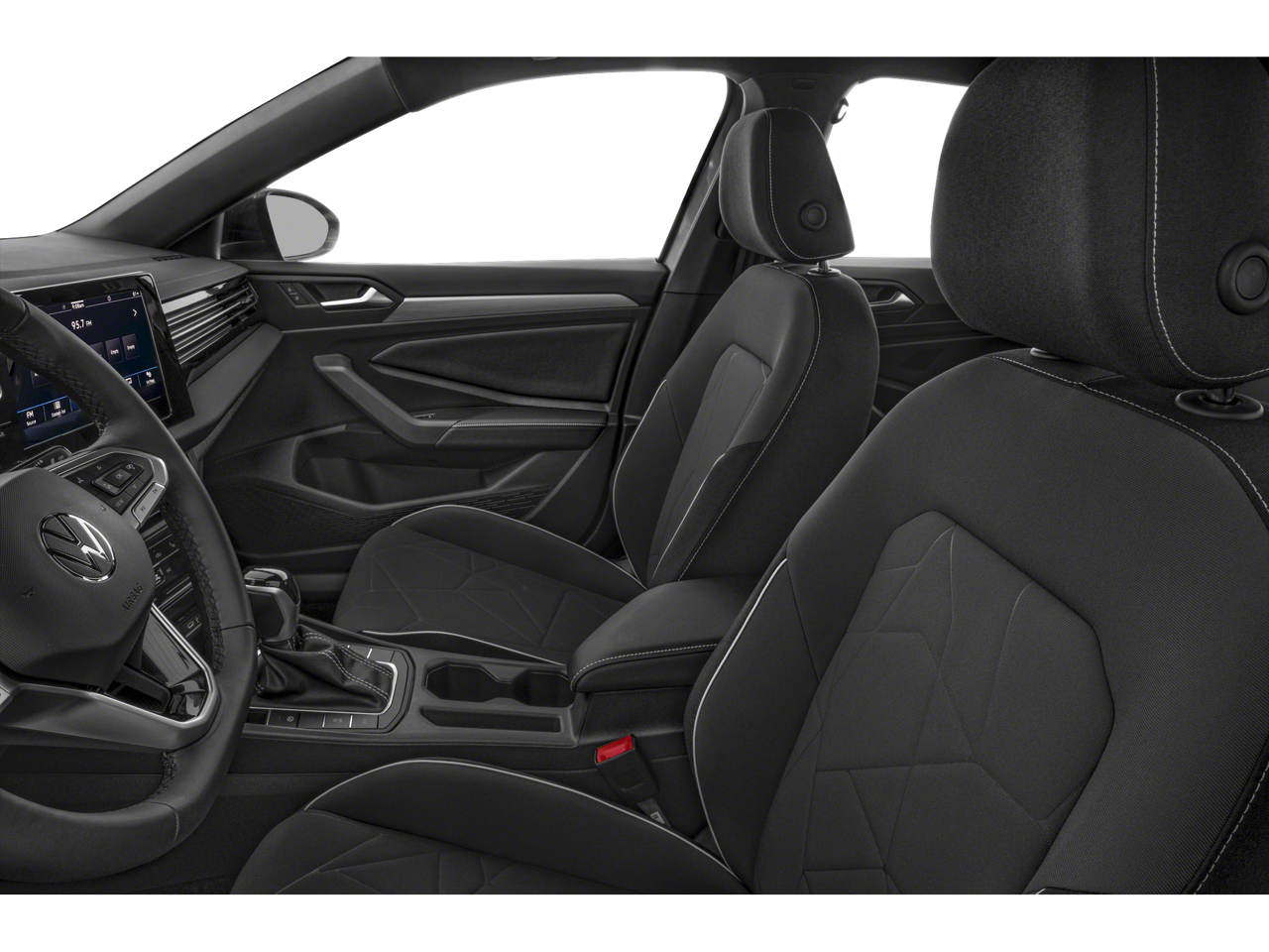 Titan Blk W/Molekular Clt Cloth, 4 Speakers, 4-Wheel Disc Brakes, ABS brakes, Active Blind Spot Monitor, Air Conditioning, Alloy wheels, Auto-dimming Rear-View mirror, Automatic temperature control, Brake assist, Bumpers: body-color, Cloth Seat Trim, Delay-off headlights, Driver door bin, Driver vanity mirror, Dual front impact airbags, Dual front side impact airbags, Electronic Stability Control, Emergency communication system: VW Car-Net Safe & Secure 5-year, Exterior Parking Camera Rear, Front anti-roll bar, Front Bucket Seats, Front Center Armrest, Front dual zone A/C, Front wheel independent suspension, Fully automatic headlights, Heated door mirrors, Heated Front Seats, Heated front seats, Illuminated entry, Leather Shift Knob, Leather steering wheel, Low tire pressure warning, Occupant sensing airbag, Outside temperature display, Overhead airbag, Overhead console, Panic alarm, Passenger door bin, Passenger vanity mirror, Power door mirrors, Power steering, Power windows, Radio data system, Radio: MIB3 Composition Color with 8 Touchscreen, Rain sensing wipers, Rear anti-roll bar, Rear reading lights, Rear seat center armrest, Rear window defroster, Remote keyless entry, Speed control, Speed-sensing steering, Split folding rear seat, Steering wheel mounted audio controls, Tachometer, Telescoping steering wheel, Tilt steering wheel, Traction control, Trip computer, Variably intermittent wipers, Wheels: 17 2-Tone Machined Alloy, Titan Blk W/Molekular Clt Cloth. 2026 Volkswagen Jetta 1.5T Sport FWD 8-Speed Automatic with Tiptronic 1.5L I-4 DI DOHC Turbocharged White