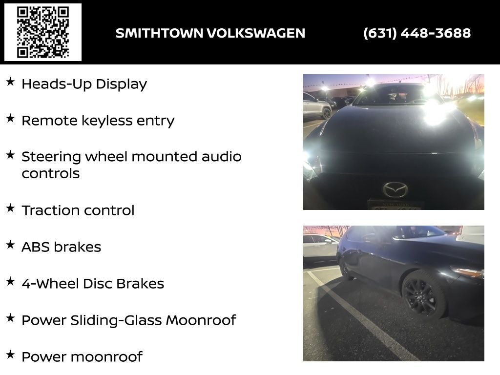 4-Wheel Disc Brakes, ABS brakes, Adaptive Front Lighting System, Alloy wheels, AppLink/Apple CarPlay and Android Auto, Auto High-beam Headlights, Brake assist, Compass, Delay-off headlights, Electronic Stability Control, Exterior Parking Camera Rear, Fully automatic headlights, Heads-Up Display, Heated Front Bucket Seats, Leather Seat Trim, Panic alarm, Power moonroof, Power Sliding-Glass Moonroof, Remote keyless entry, Split folding rear seat, Steering wheel mounted audio controls, Traction control, Turn signal indicator mirrors, Wheels: 18 x 7J Black Finish Alloy, 12 Speakers, Active Driving Display, Air Conditioning, Aluminum Speaker Grille, AM/FM radio: SiriusXM, Automatic temperature control, Bumpers: body-color, Driver door bin, Driver vanity mirror, Dual front impact airbags, Dual front side impact airbags, Emergency communication system: MAZDA CONNECT, Exterior Mirrors w/Memory Positioning, Front & Rear LED Signature Illumination Headlights, Front anti-roll bar, Front Bucket Seats, Front Center Armrest, Front dual zone A/C, Front reading lights, Front wheel independent suspension, Heated front seats, Illuminated entry, Knee airbag, Low tire pressure warning, Memory seat, Occupant sensing airbag, Outside temperature display, Overhead airbag, Overhead console, Overhead Console w/Sunglass Holder, Passenger door bin, Passenger vanity mirror, Power door mirrors, Power driver seat, Power steering, Power windows, Premium Package, Radio data system, Radio: AM/FM Audio System, Rain sensing wipers, Rear seat center armrest, Rear window defroster, Rear window wiper, Speed control, Speed-sensing steering, Spoiler, Tachometer, Telescoping steering wheel, Tilt steering wheel, Trip computer, Variably intermittent wipers, Wheel Locks, 4-Wheel Disc Brakes, ABS brakes, Adaptive Front Lighting System, Alloy wheels, AppLink/Apple CarPlay and Android Auto, Auto High-beam Headlights, Brake assist, Compass, Delay-off headlights, Electronic Stability Control, Exterior Parking Camera Rear, Fully automatic headlights, Heads-Up Display, Heated Front Bucket Seats, Leather Seat Trim, Panic alarm, Power moonroof, Power Sliding-Glass Moonroof, Remote keyless entry, Split folding rear seat, Steering wheel mounted audio controls, Traction control, Turn signal indicator mirrors, Wheels: 18 x 7J Black Finish Alloy. Your Volkswagen Dealer Near me Yes, we are your Volkswagen Certified Dealer in Smithtown also near Islip Huntington and Oyster Bay Smithtown Volkswagen Certified dealer in suffolk Hablamos español para tus autos en venta.