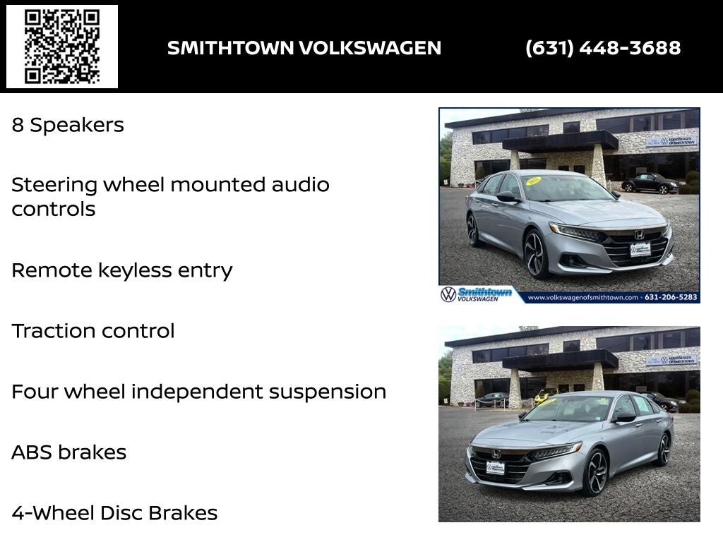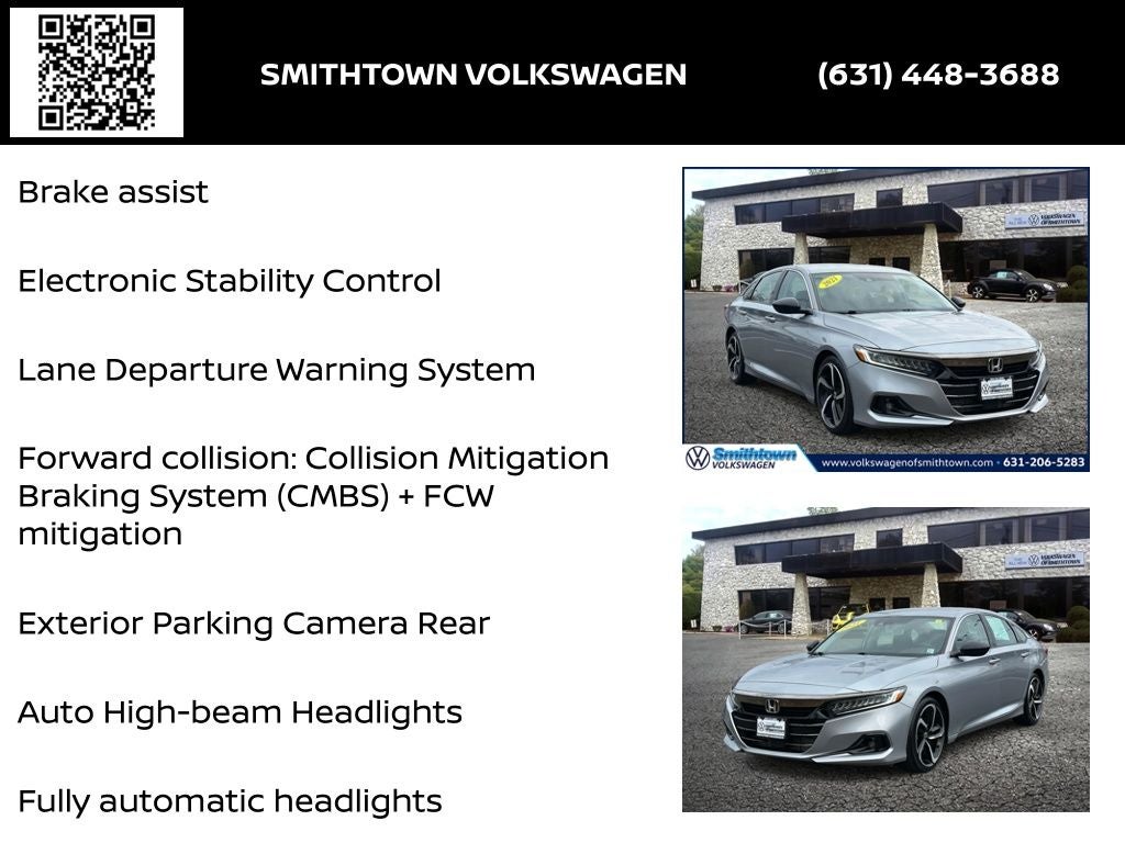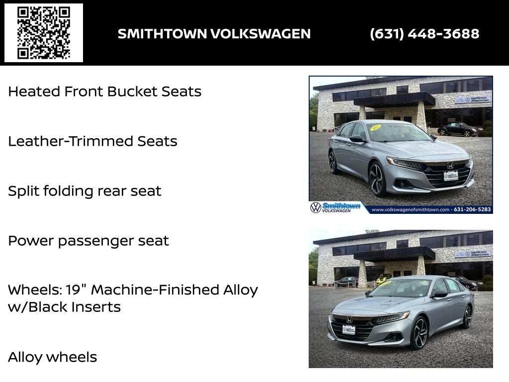 Black w/Leather-Trimmed Seats, 4-Wheel Disc Brakes, 8 Speakers, ABS brakes, Alloy wheels, Apple CarPlay/Android Auto, Auto High-beam Headlights, Brake assist, Delay-off headlights, Electronic Stability Control, Exterior Parking Camera Rear, Forward collision: Collision Mitigation Braking System (CMBS) + FCW mitigation, Four wheel independent suspension, Front fog lights, Fully automatic headlights, Heated door mirrors, Heated Front Bucket Seats, Lane Departure Warning System, Leather-Trimmed Seats, Panic alarm, Power door mirrors, Power passenger seat, Remote keyless entry, Security system, Split folding rear seat, Steering wheel mounted audio controls, Traction control, Wheels: 19 Machine-Finished Alloy w/Black Inserts, Adaptive Cruise Control: Adaptive Cruise Control (ACC) with Low-Speed Follow, Air Conditioning, AM/FM radio, Automatic temperature control, Bumpers: body-color, Driver door bin, Driver vanity mirror, Dual front impact airbags, Dual front side impact airbags, Emergency communication system: HondaLink, Front anti-roll bar, Front Bucket Seats, Front Center Armrest, Front dual zone A/C, Front reading lights, Heated front seats, Illuminated entry, Knee airbag, Leather Shift Knob, Leather steering wheel, Low tire pressure warning, Occupant sensing airbag, Outside temperature display, Overhead airbag, Overhead console, Passenger door bin, Passenger vanity mirror, Power driver seat, Power steering, Power windows, Radio data system, Radio: 180-Watt AM/FM Audio System, Rear anti-roll bar, Rear seat center armrest, Rear window defroster, Speed control, Speed-sensing steering, Speed-Sensitive Wipers, Spoiler, Tachometer, Telescoping steering wheel, Tilt steering wheel, Trip computer, Variably intermittent wipers, Black w/Leather-Trimmed Seats, 4-Wheel Disc Brakes, 8 Speakers, ABS brakes, Alloy wheels, Apple CarPlay/Android Auto, Auto High-beam Headlights, Brake assist, Delay-off headlights, Electronic Stability Control, Exterior Parking Camera Rear, Forward collision: Collision Mitigation Braking System (CMBS) + FCW mitigation, Four wheel independent suspension, Front fog lights, Fully automatic headlights, Heated door mirrors, Heated Front Bucket Seats, Lane Departure Warning System, Leather-Trimmed Seats, Panic alarm, Power door mirrors, Power passenger seat, Remote keyless entry, Security system, Split folding rear seat, Steering wheel mounted audio controls, Traction control, Wheels: 19 Machine-Finished Alloy w/Black Inserts. Your Volkswagen Dealer Near me Yes, we are your Volkswagen Certified Dealer in Smithtown also near Islip Huntington and Oyster Bay Smithtown Volkswagen Certified dealer in suffolk Hablamos español para tus autos en venta.