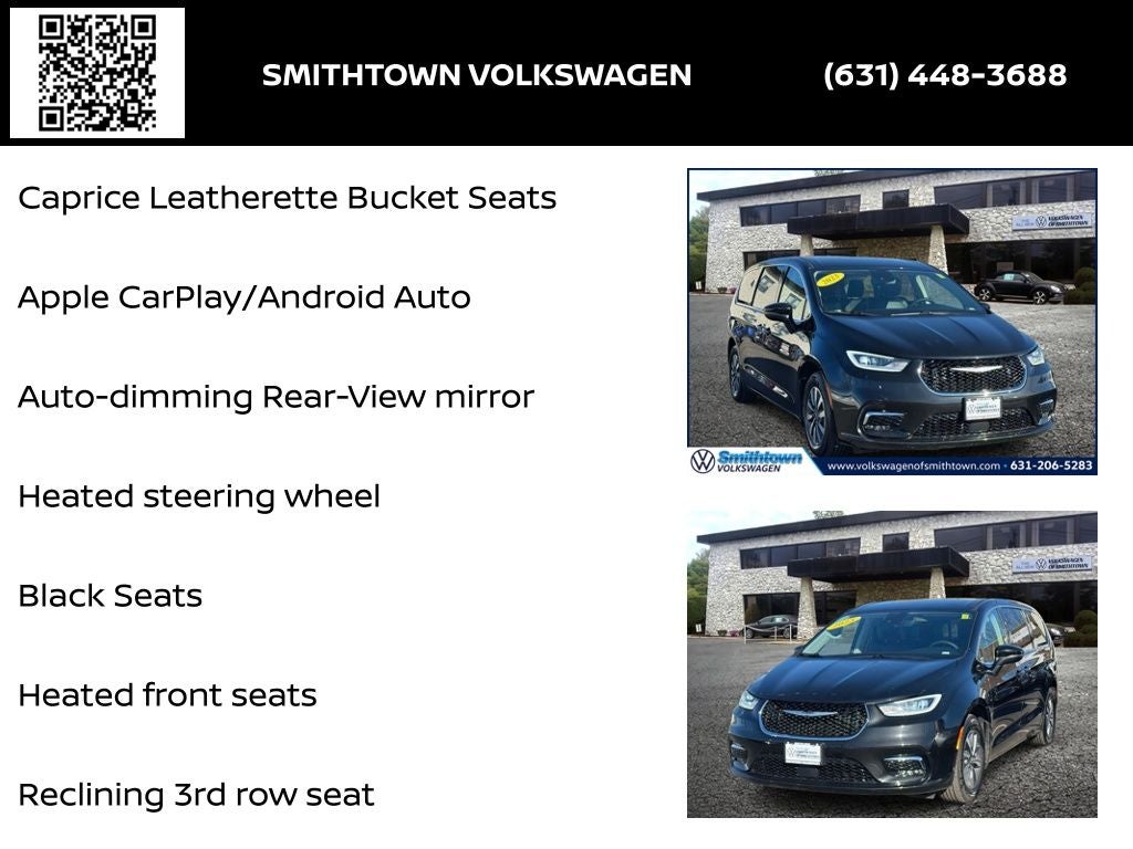 3.6L V6, 10.1 Touchscreen Display, 3rd row seats: split-bench, 4-Wheel Disc Brakes, ABS brakes, Alloy wheels, Apple CarPlay, Apple CarPlay/Android Auto, Auto-dimming Rear-View mirror, Black Seats, Brake assist, Caprice Leatherette Bucket Seats, Delay-off headlights, Electronic Stability Control, Exterior Parking Camera Rear, Four wheel independent suspension, Front fog lights, Fully automatic headlights, Heated door mirrors, Heated front seats, Heated steering wheel, Heavy Duty Suspension, Panic alarm, Power door mirrors, Power Liftgate, Reclining 3rd row seat, Remote keyless entry, Security system, Split folding rear seat, Steering wheel mounted audio controls, Traction control, Turn signal indicator mirrors, Wheels: 17 x 7.0 Diamond Cut w/Painted Pockets, 3.59 Axle Ratio, 6 Speakers, Air Conditioning, AM/FM radio: SiriusXM, Automatic temperature control, Bumpers: body-color, Compass, Disassociated Touchscreen Display, Driver door bin, Driver vanity mirror, Driver's Seat Mounted Armrest, Dual front impact airbags, Dual front side impact airbags, Emergency communication system: Uconnect Access, Front anti-roll bar, Front Bucket Seats, Front dual zone A/C, Front Fascia Air Deflectors, Front reading lights, Google Android Auto, GPS Antenna Input, Illuminated entry, Integrated Active Noise Cancellation, Integrated Center Stack Radio, Knee airbag, Low tire pressure warning, Memory seat, Occupant sensing airbag, Outside temperature display, Overhead airbag, Overhead console, Passenger door bin, Passenger seat mounted armrest, Passenger vanity mirror, Power driver seat, Power steering, Power windows, Quick Order Package 2EL, Radio data system, Radio: Uconnect 5 w/10.1 Display, Rain sensing wipers, Rear air conditioning, Rear reading lights, Rear window defroster, Rear window wiper, Speed control, Spoiler, Tachometer, Telescoping steering wheel, Tilt steering wheel, Trip computer, USB Host Flip, Variably intermittent wipers, Voltmeter, 3.6L V6, 10.1 Touchscreen Display, 3rd row seats: split-bench, 4-Wheel Disc Brakes, ABS brakes, Alloy wheels, Apple CarPlay, Apple CarPlay/Android Auto, Auto-dimming Rear-View mirror, Black Seats, Brake assist, Caprice Leatherette Bucket Seats, Delay-off headlights, Electronic Stability Control, Exterior Parking Camera Rear, Four wheel independent suspension, Front fog lights, Fully automatic headlights, Heated door mirrors, Heated front seats, Heated steering wheel, Heavy Duty Suspension, Panic alarm, Power door mirrors, Power Liftgate, Reclining 3rd row seat, Remote keyless entry, Security system, Split folding rear seat, Steering wheel mounted audio controls, Traction control, Turn signal indicator mirrors, Wheels: 17 x 7.0 Diamond Cut w/Painted Pockets. Your Volkswagen Dealer Near me Yes, we are your Volkswagen Certified Dealer in Smithtown also near Islip Huntington and Oyster Bay Smithtown Volkswagen Certified dealer in suffolk Hablamos español para tus autos en venta.