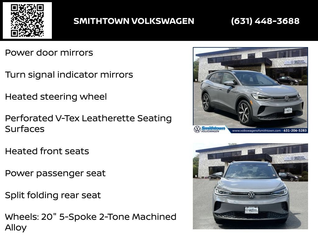 Volkswagen Certified Pre-Owned Certified, ABS brakes, Alloy wheels, Auto High-beam Headlights, Brake assist, Delay-off headlights, Electronic Stability Control, Exterior Parking Camera Rear, Four wheel independent suspension, Fully automatic headlights, Heated door mirrors, Heated front seats, Heated steering wheel, Memory seat, Navigation System, Panic alarm, Perforated V-Tex Leatherette Seating Surfaces, Power door mirrors, Power Liftgate, Power passenger seat, Remote keyless entry, Split folding rear seat, Steering wheel mounted audio controls, Traction control, Turn signal indicator mirrors, Wheels: 20 5-Spoke 2-Tone Machined Alloy, 4 Wheel Independent Suspension, 4.39 Axle Ratio, 7 Speakers, Air Conditioning, Auto-dimming Rear-View mirror, Automatic temperature control, Bumpers: body-color, Driver door bin, Driver vanity mirror, Driver's Seat Mounted Armrest, Dual front impact airbags, Dual front side impact airbags, Emergency communication system: VW Car-Net Safe & Secure 5-year, Front anti-roll bar, Front Bucket Seats, Front dual zone A/C, Front fog lights, Front reading lights, Heated Front Seats, Illuminated entry, Low tire pressure warning, Occupant sensing airbag, Outside temperature display, Overhead airbag, Overhead console, Passenger door bin, Passenger seat mounted armrest, Passenger vanity mirror, Power driver seat, Power steering, Power windows, Radio data system, Radio: Discover Pro Max w/12 Touchscreen Nav, Rain sensing wipers, Rear anti-roll bar, Rear reading lights, Rear seat center armrest, Rear window defroster, Rear window wiper, Speed control, Speed-sensing steering, Spoiler, Telescoping steering wheel, Tilt steering wheel, Trip computer, Variably intermittent wipers, ABS brakes, Alloy wheels, Auto High-beam Headlights, Brake assist, Delay-off headlights, Electronic Stability Control, Exterior Parking Camera Rear, Four wheel independent suspension, Fully automatic headlights, Heated door mirrors, Heated front seats, Heated steering wheel, Memory seat, Navigation System, Panic alarm, Perforated V-Tex Leatherette Seating Surfaces, Power door mirrors, Power Liftgate, Power passenger seat, Remote keyless entry, Split folding rear seat, Steering wheel mounted audio controls, Traction control, Turn signal indicator mirrors, Wheels: 20 5-Spoke 2-Tone Machined Alloy. Your Volkswagen Dealer Near me Yes, we are your Volkswagen Certified Dealer in Smithtown also near Islip Huntington and Oyster Bay Smithtown Volkswagen Certified dealer in su